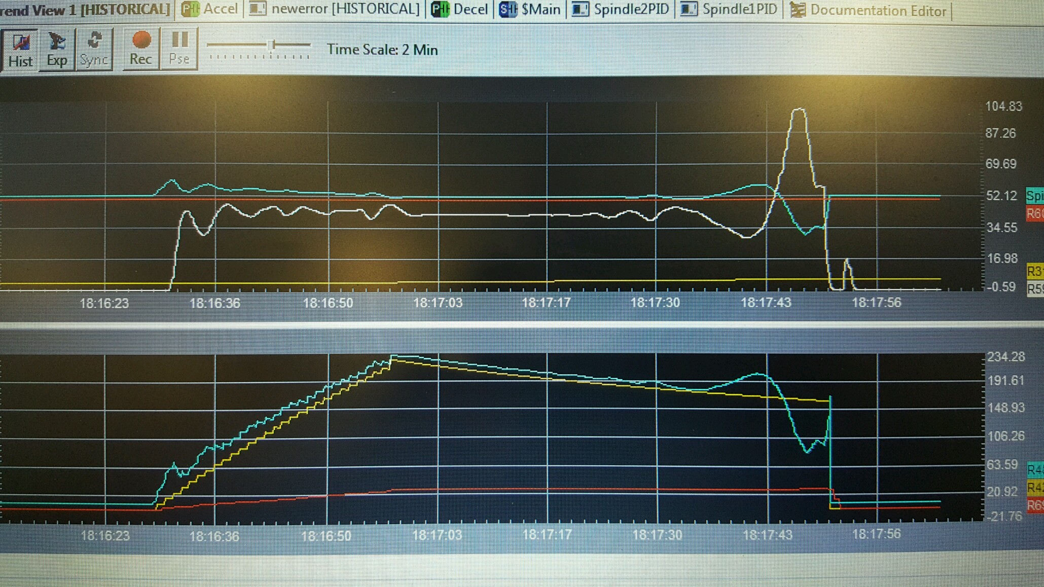 Also, in the middle part of the trend, the PID output is dead flat, when it should be trying to reset.  Since DM PID is dependent, increasing either P or I should make it more aggressive.