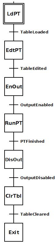 LdPT (Load Preset Table) is the initial stage that loads a particular Preset Table for a CTRIO discrete output. When loaded successfully it transitions to the next stage.