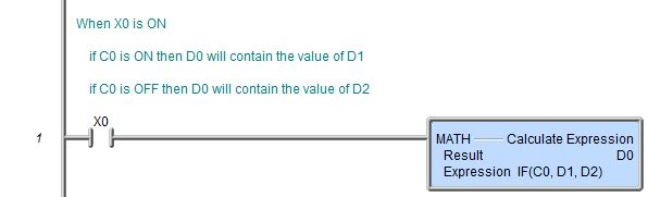 In this example: if C0 is ON then D0 will contain the value of D1 else (C0 is OFF) D0 will contain the value of D2. |