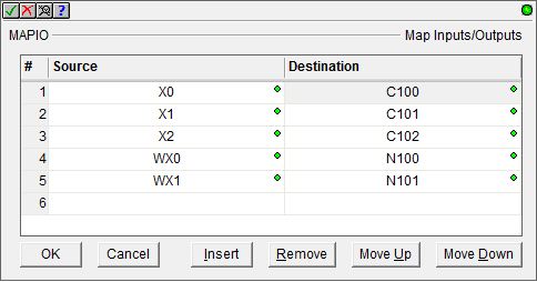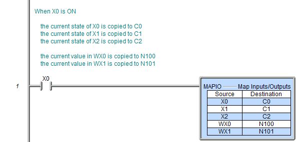 When used as intended it will map Discrete Inputs (X) to internal Bits (C) and Analog Inputs (WX) to Numeric elements (N), and then internal Bits (C) to Discrete Outputs (Y) and internal Numeric elements (N) to Analog Outputs (WY).
