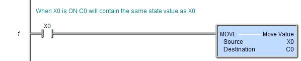 Destination - designates the location where the value will be copied to. This can be any writable bit location.