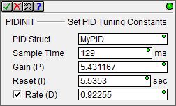 The Set PID Tuning Constants (PIDINIT) instruction is used to initialize the runtime parameters of the designated PID loop.