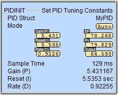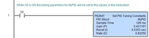 Note: to use variables to set the tuning constants use the Move Value instruction referencing the individual PID structure members, for example MyPID.Gain, MyPID.SampleTime, etc..