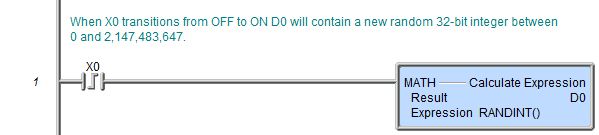 The Random Integer (RANDINT) instruction is a pseudo-random number generator that produces an integer value of uniform distribution between 0 and 2,147,483,647.