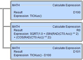 In the example to the right D101 will contain the number of microseconds required to perform the Math calculation and store the result in R0. There is a small amount of overhead in reading and calculating the elapsed time in microseconds which should be taken into account if measuring very fast logic.
