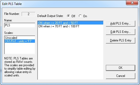 The Edit PLS Table dialog is where a PLS table is created and/or edited.